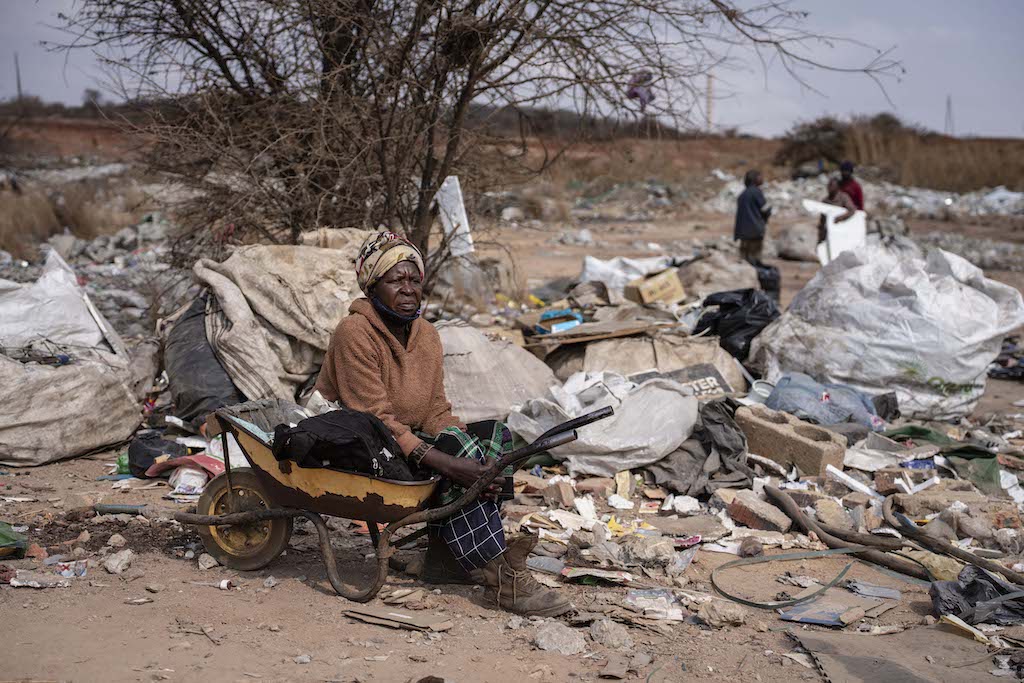 The project is part of South Africa’s greater Hydrogen Valley strategy, and aims to revitalise surrounding areas, in part by providing jobs. Pictured here is an elderly woman who makes a living collecting recyclable materials at an illegal dumping site in the Vaal area. Photo: Ihsaan Haffejee